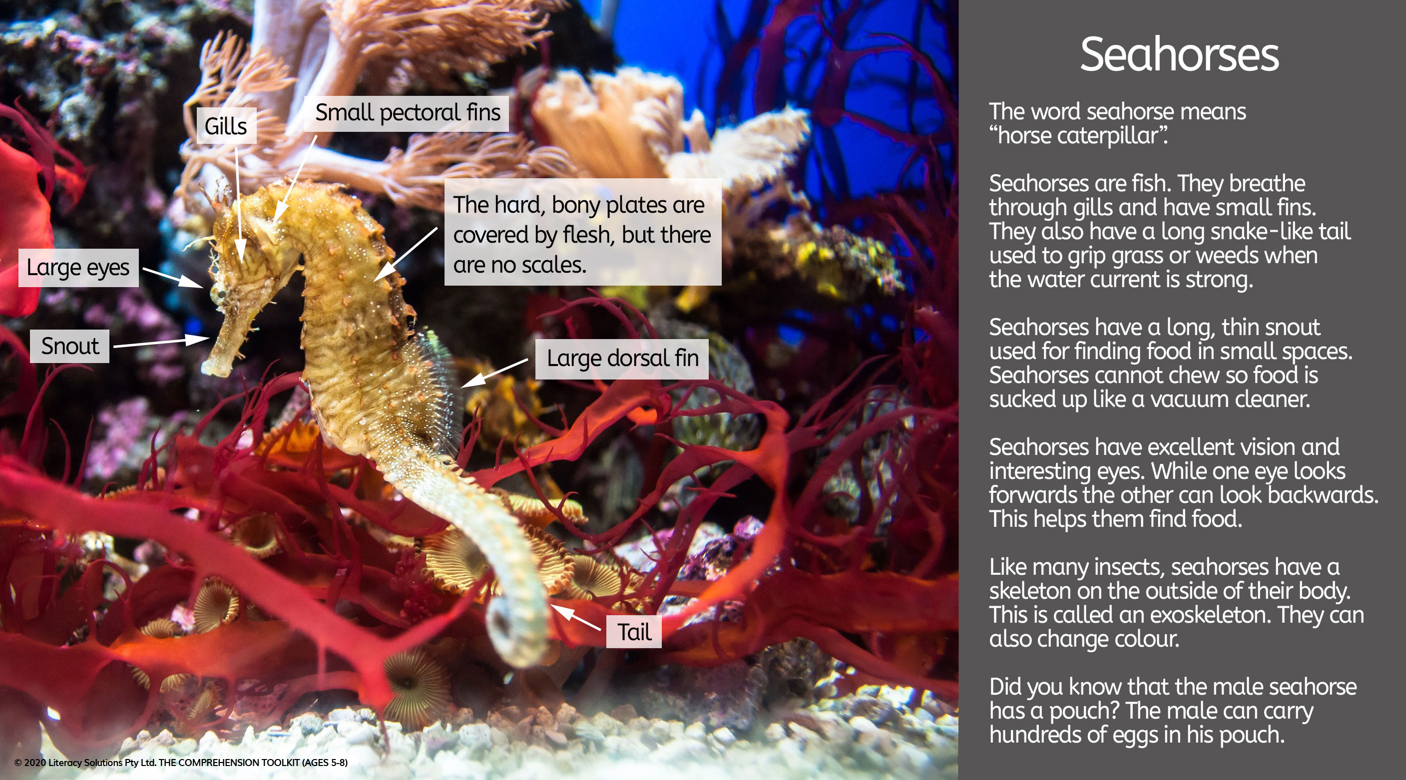 All charts and artwork, including illustrations, text models and photographs provided in the printed publication, 'The Comprehension Toolkit (Ages 5-8)' and in this digital file repository are protected by copyright. Copying, replicating or modifying any part of this resource for any use, other than its original purpose is strictly prohibited.